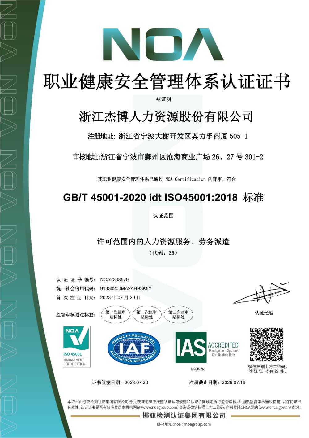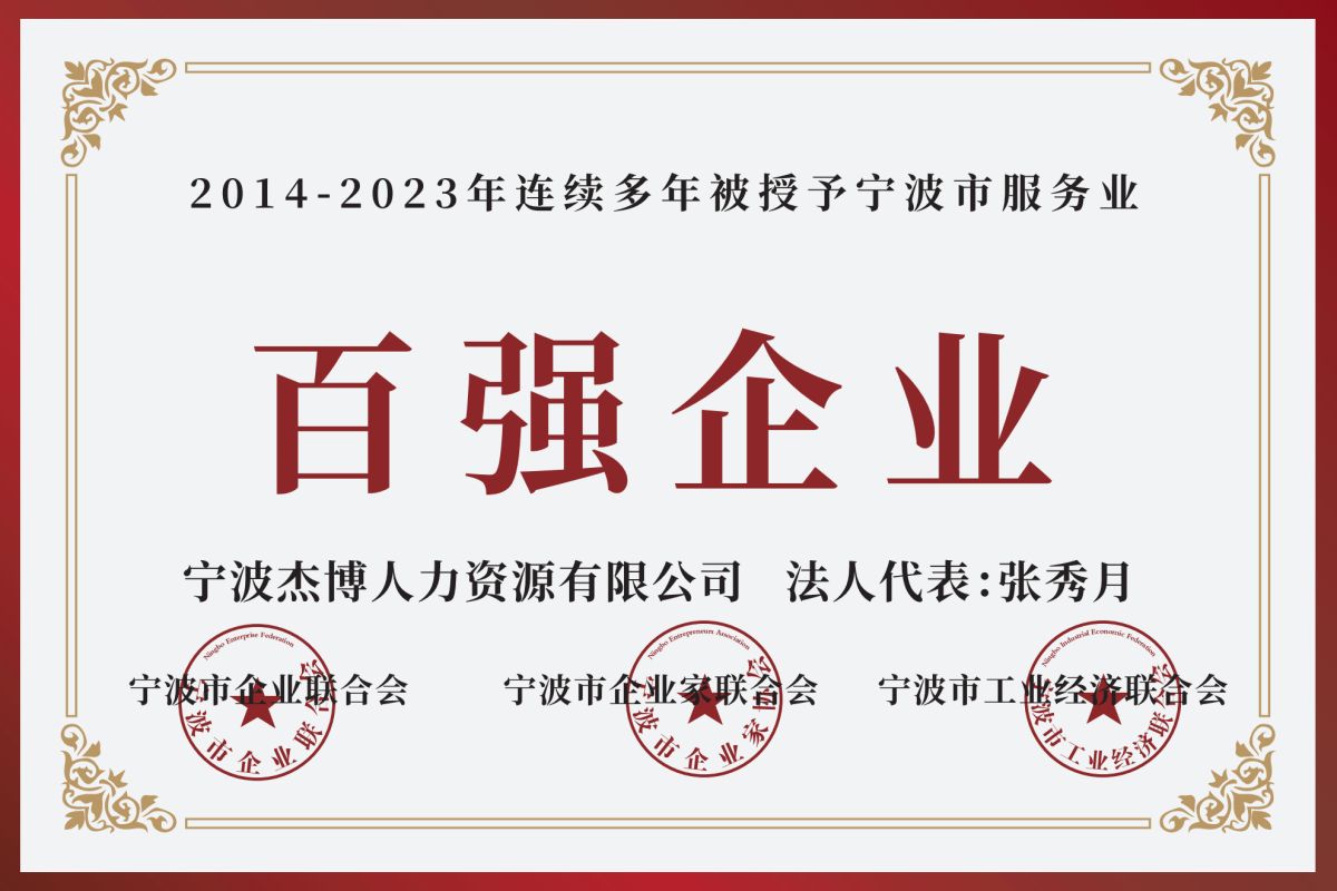浙江杰博人力資源股份有限公司(以下簡(jiǎn)稱(chēng)“杰博股份”)成立于2008年1月,總部位于中國制造業(yè)單項冠軍、院士之鄉、全球最大港口之城——浙江省寧波市。杰博股份,目前已累計服務(wù)近10000家客戶(hù)、60000+名員工,每年鏈接1000000+名中外人才,服務(wù)網(wǎng)絡(luò )覆蓋寧波、杭州、溫州、臺州、紹興等浙江省11個(gè)地級市及北京、上海、廣州、深圳、天津、石家莊、青島、濟南、濟寧、蘇州、南京、無(wú)錫、福州、武漢、重慶、成都、西安、貴州等全國100多個(gè)城市,出海服務(wù)覆蓋美國、加拿大、德國、法國、英國、意大利、印度、韓國、日本、澳大利亞、越南、新加坡、印度尼西亞、巴西、阿根廷、南非、迪拜等60+國家和地區。2024年,杰博股份全年營(yíng)收超48.1億,利稅超3億。