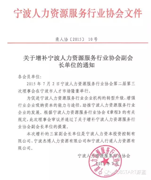 值得關(guān)注的是,本次會(huì )議通過(guò)了“審議關(guān)于增補寧波人力資源服務(wù)行業(yè)協(xié)會(huì )副會(huì )長(cháng)的提案”,杰博人力資源被推選為協(xié)會(huì )副會(huì )長(cháng)單位。