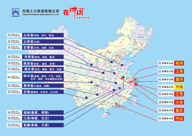 (上圖為2013年度杰博人力資源全國布局圖)