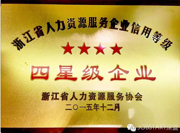 2016年1月6日,在杭州召開(kāi)的浙江省人力資源服務(wù)協(xié)會(huì )第一屆第三次會(huì )員大會(huì )典禮上,包括寧波杰博人力資源有限公司在內的17家人力資源企業(yè)獲評首批“浙江省人力資源服務(wù)星級企業(yè)”殊榮,其中,杰博人力資源獲評“四星級”企業(yè)。