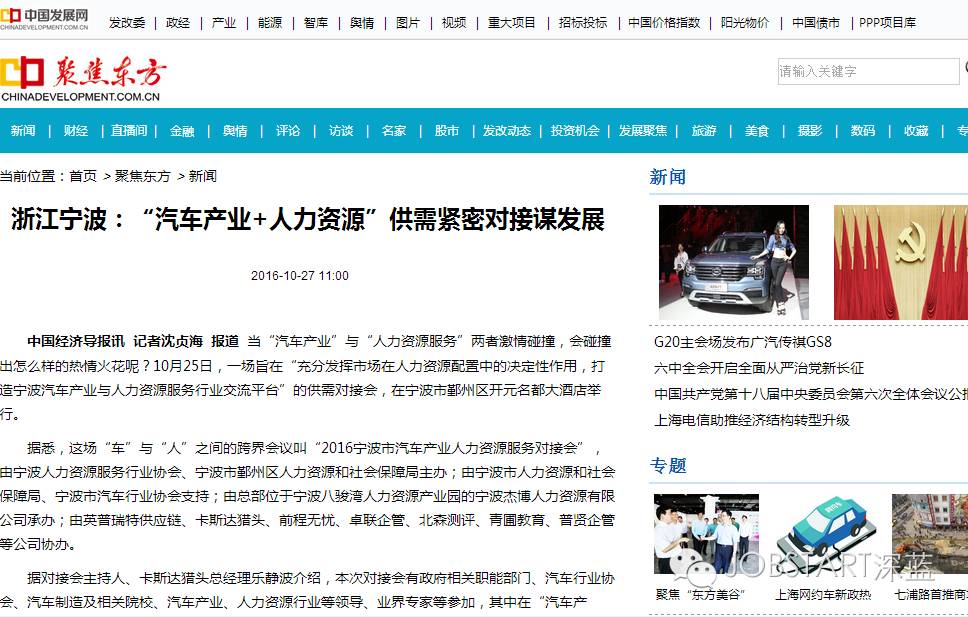 本次對接會(huì )主辦方負責人表示,全國首個(gè)“中國制造2025”試點(diǎn)示范城市花落寧波不到兩個(gè)月,為制造強國探路的戰鼓再次在四明大地隆隆擂響。而汽車(chē)產(chǎn)業(yè)作為寧波的重要產(chǎn)業(yè)之一,更是“中國制造2025”的重要組成部分之一,汽車(chē)產(chǎn)業(yè)的人力資源服務(wù)就顯得尤為重要,這也是舉行本次對接會(huì )的意義所在。(來(lái)源:中國網(wǎng)、中國發(fā)展網(wǎng)等;供圖:王露、趙寧)